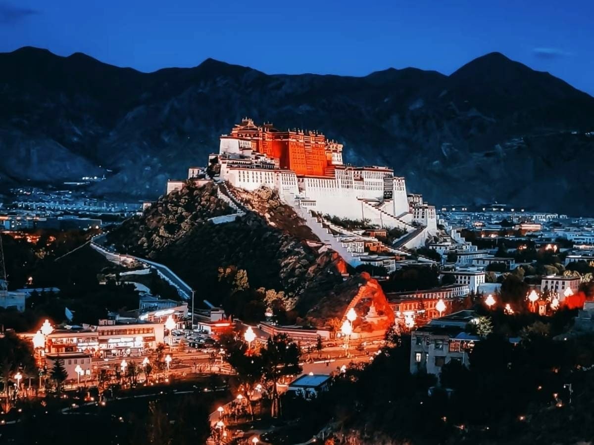 夜晚的布達拉宮,展現出與白天截然不同的氣質。當燈光亮起,