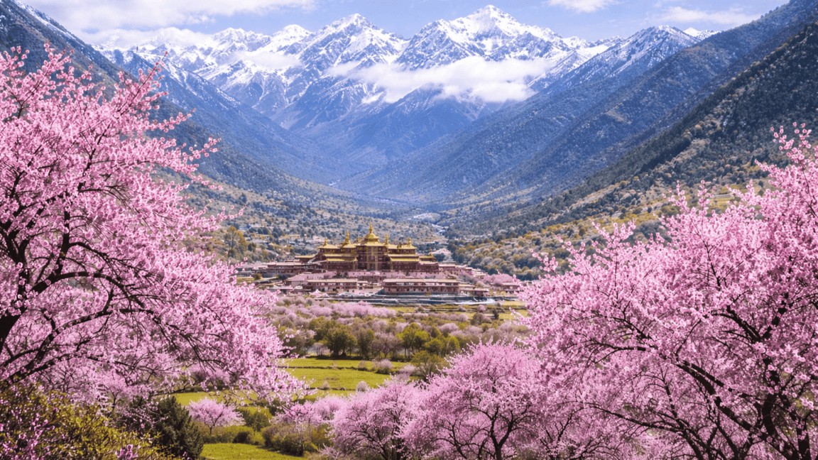 🔷 林芝地區 3–4 月可見桃花景觀